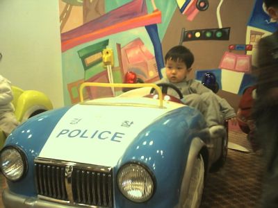 자동차를 좋아하는 호연이는 경찰차 위에서 떠날 줄을 몰랐다.