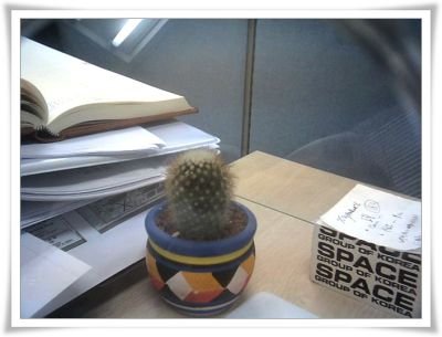 책상 위의 새로운 식구 Posted on 2004년 5월 18일2011년 3월 23일 by selfhood 삭막했던 책상 위에 새로운 식구가 하나 늘었다. 저녁을 먹고 나서 회사로 돌아오는 길에 꽃집에 들러 선인장을 하나 샀다. 앞으로 잘 지내자꾸나.