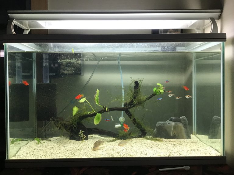 카디날테트라는 3마리를 사왔는데, 1마리가 용궁으로 갔고, 기존에 있던 고등어처럼 커져버린 2마리와 합하여 총 4마리가 되었다.