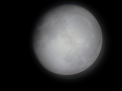 아파트 옥상 위로 떠오른 달은 보름을 지나 서서히 저물어 가고 있었다. (알다시피 망원경은 좌우 대칭이기에 왼편이 줄어드는 것으로 보이지만 실제로 우리 눈으로 보는 달은 오른쪽이 줄어들고 있는 것이다.)